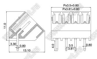 вилки однорядные угловые 45 град. на плату, шаг 3,5 мм