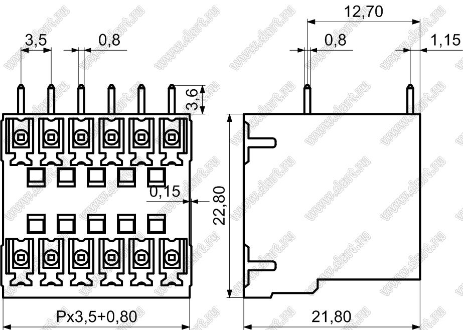 Клеммники разъемные серии KF2EDGRH-3.5 (15EDGRH-3.5) - это вилки угловые двухрядные на плату, шаг 3,5 мм. Разъемные клеммники серии KF2EDGRH-3.5 (15EDGRH-3.5) обеспечивают надежное соединение жгута проводов с печатной платой электронного блока. Серия KF2EDGRH-3.5 (15EDGRH-3.5) принадлежит семейству разъемных клеммников с шагом 3.5 мм. Стандартный цвет разъёмных клеммников серии KF2EDGRH-3.5 (15EDGRH-3.5) показан на фотографии. Разъёмные клеммники серии KF2EDGRH-3.5 (15EDGRH-3.5) могут быть изготовлены под заказ другого цвета при минимально возможном запуске в производство. Условия поставки разъёмных клеммников серии KF2EDGRH-3.5 (15EDGRH-3.5) уточняйте у наших менеджеров.