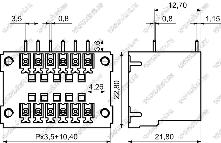 вилки угловые двухрядные на плату с закладными гайками, шаг 3,5 мм