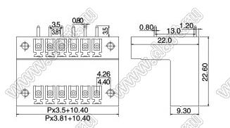вилки угловые двухрядные ступенчатые на плату с закладными гайками, шаг 3,5 мм