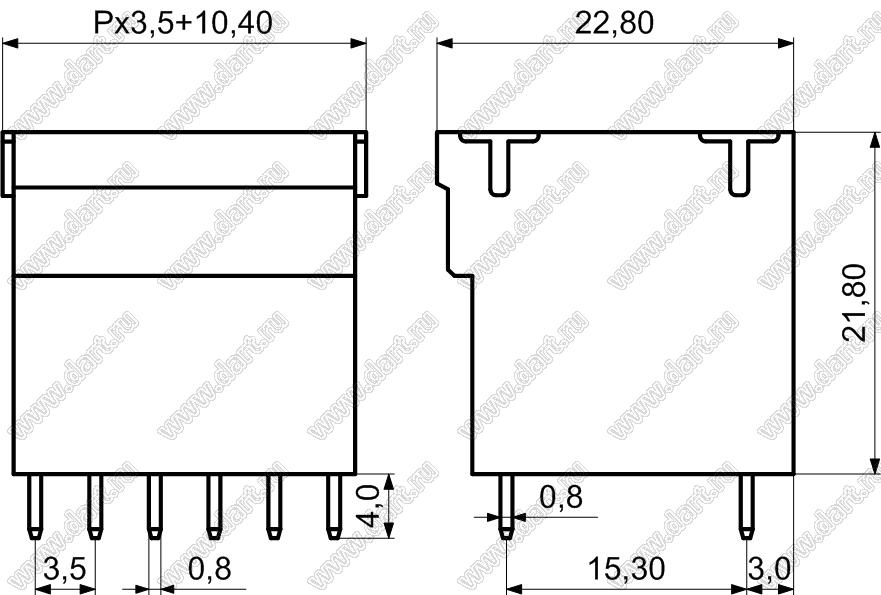вилки прямые двухрядные на плату с закладными гайками, шаг 3,5 мм