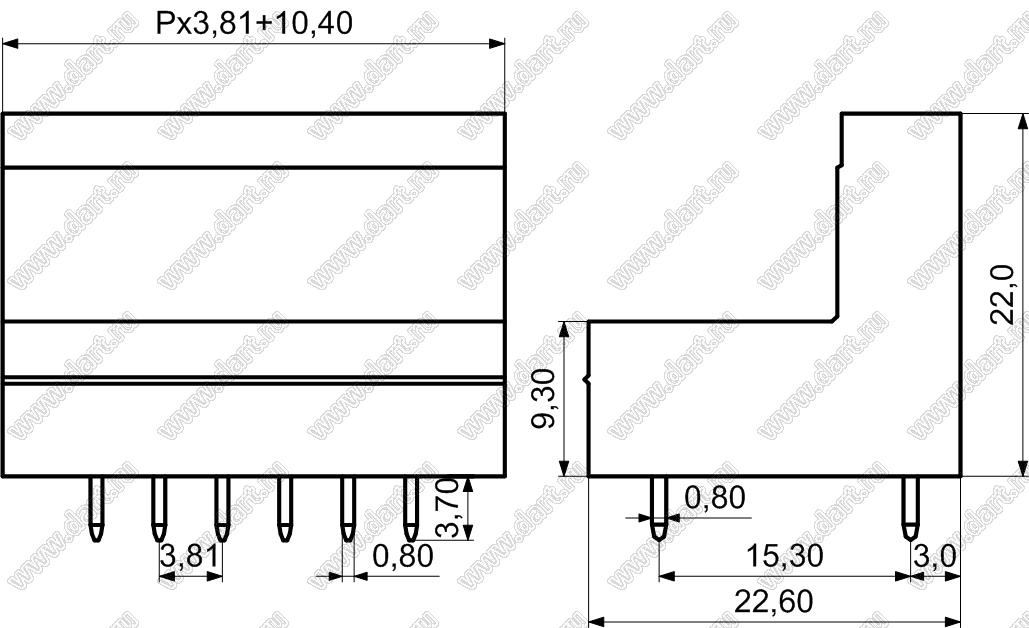 вилки прямые двухрядные ступенчатые на плату с закладными гайками, шаг 3,81 мм