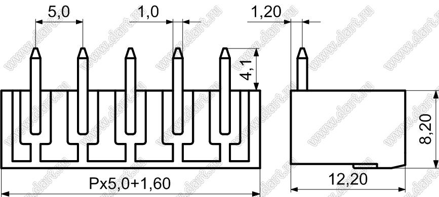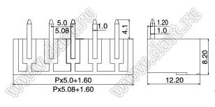 вилки однорядные угловые на плату, шаг 5,0 мм