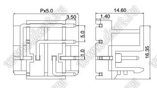 вилка однорядная угловая на плату, шаг 5,0 мм