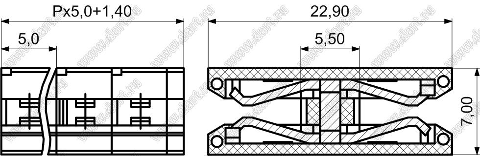 Переходники розетки-розетки наращиваемые, шаг 5,0 мм