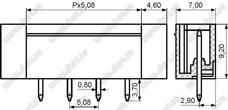 вилки однорядные прямые на плату и с монтажными ушами, шаг 5,08 мм