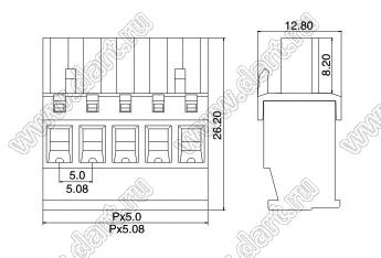 розетки однорядные на провод с угловыми входами проводов под винтовые зажимы, шаг 5,08 мм