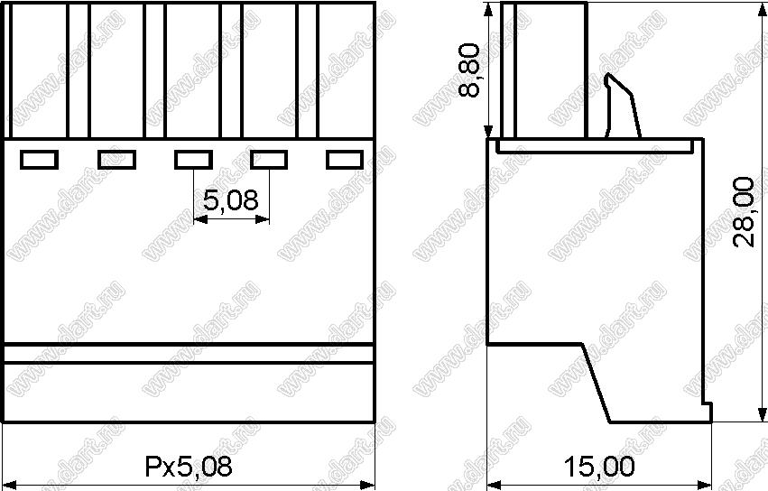 розетки однорядные на провод с прямыми входами проводов под винтовые зажимы, шаг 5,08 мм