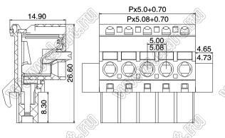 розетки однорядные на провод с угловыми входами проводов под пружинные зажимы и с монтажными ушами, шаг 5,08 мм