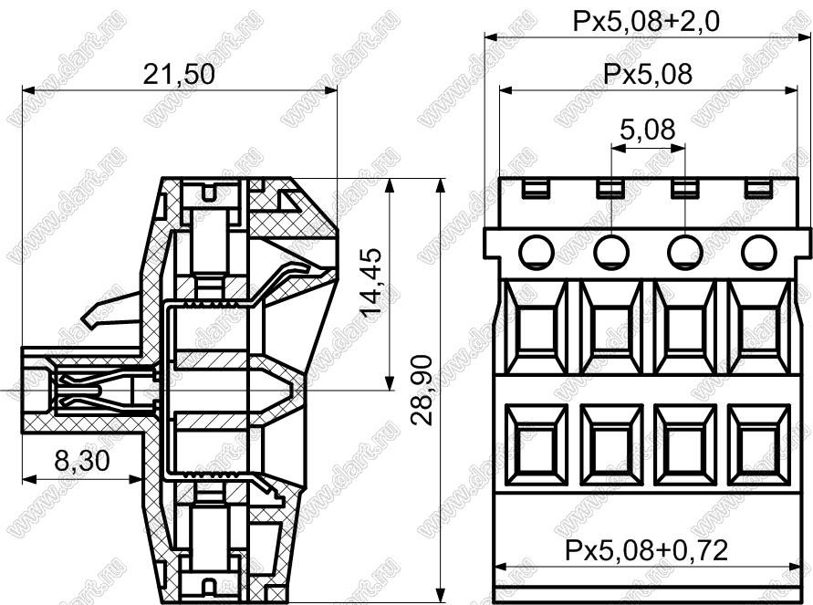 Каталог > Электронные компоненты, радиодетали > Клеммники (колодки клеммные) > Клеммники разъемные > Разъемные клеммники шаг 5,08 мм > KF2EDGKH-5.08 (2EDGKH-5.08) серия