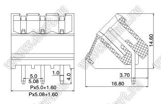 вилки однорядные угловые 45 град. на плату, шаг 5,08 мм