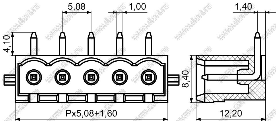 вилки однорядные угловые на плату с боковыми защелками, шаг 5,08 мм