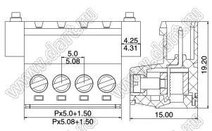 вилки однорядные на провод с прямыми входами проводов под винтовые зажимы с монтажными ушами, шаг 5,08 мм