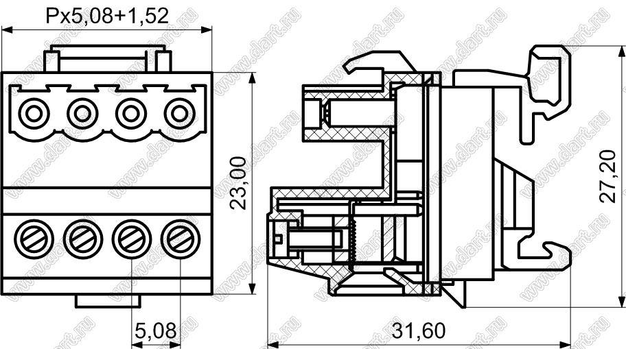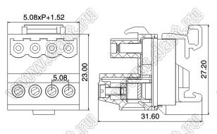 розетки однорядные на DIN-рейку с входами проводов под винтовые зажимы, шаг 5,08 мм