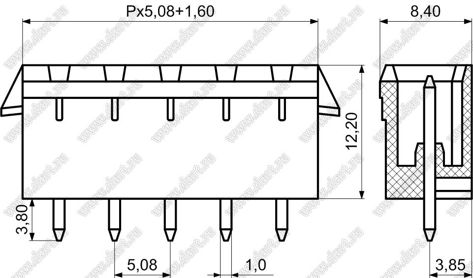 вилки однорядные прямые на плату с боковыми защелками, шаг 5,08 мм