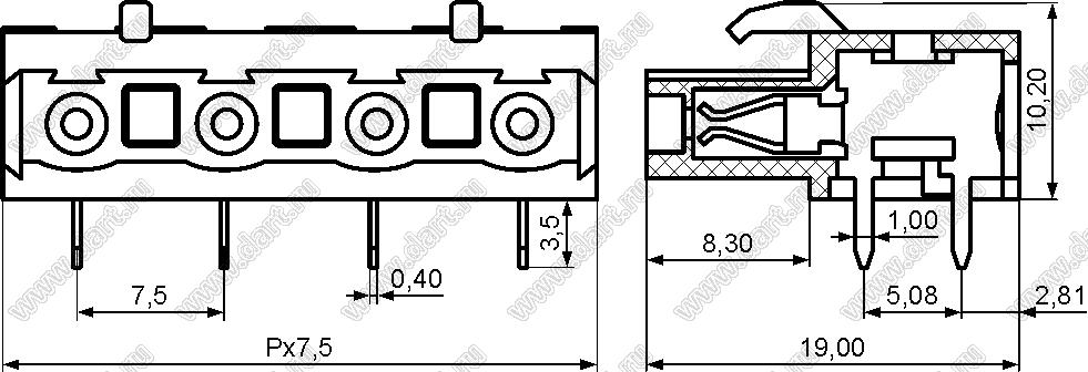 Каталог > Электронные компоненты, радиодетали > Клеммники (колодки клеммные) > Клеммники разъемные > Разъемные клеммники шаг 7,5 мм > KF2EDGA-7.5 (2EDGA-7.5) серия