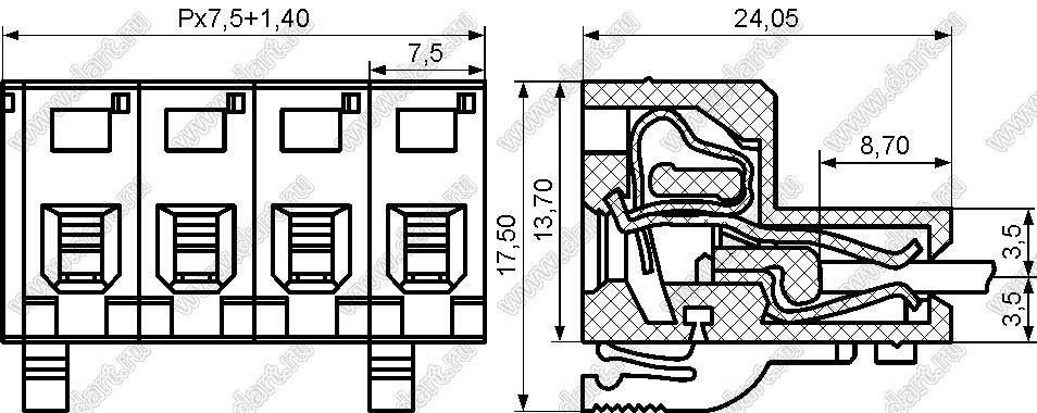 Каталог > Электронные компоненты, радиодетали > Клеммники (колодки клеммные) > Клеммники разъемные > Разъемные клеммники шаг 7,5 мм > KF2EDGDJ-7.5 серия