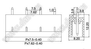 вилки однорядные прямые на плату, шаг 7,5 мм