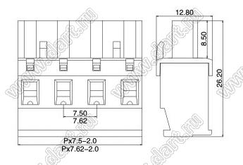 розетки однорядные на провод с угловыми входами проводов под винтовые зажимы, шаг 7,62 мм