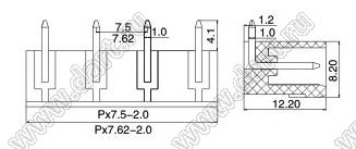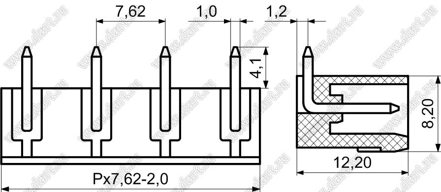 вилки однорядные угловые на плату, шаг 7,62 мм