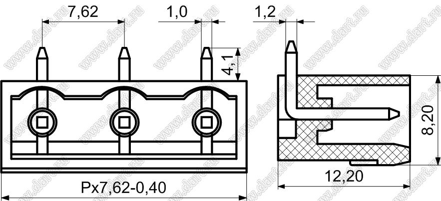 вилки однорядные угловые на плату, шаг 7,62 мм