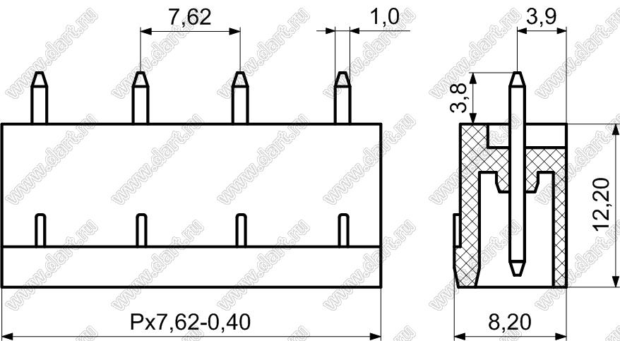 вилки однорядные прямые на плату, шаг 7,62 мм