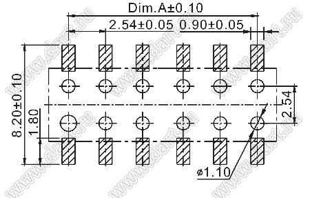 розетки двухрядные прямые на плату для поверхностного (SMD) монтажа с захватом, шаг 2,54 x 2,54 мм