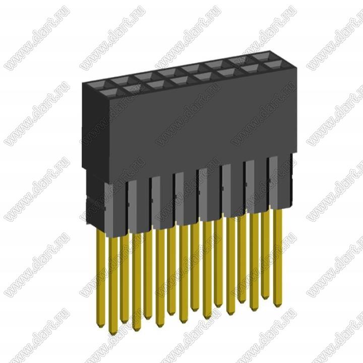 розетки двухрядные с увеличенным изолятором на плату для монтажа в отверстия, шаг 2,54 x 2,54 мм