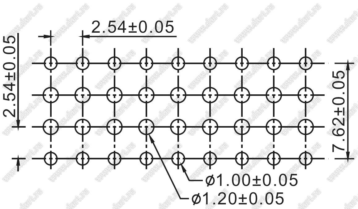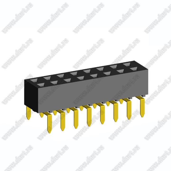 розетки двухрядные прямые (гнездо) на плату для монтажа в отверстия, высота изолятора 5,0 мм; шаг 2,54 x 2,54 мм