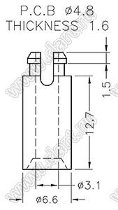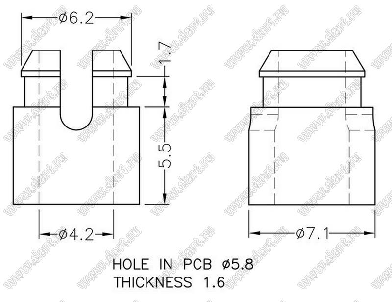 Диаметр отверстия в плате dп: 5.8 мм Толщина платы s: 1,6 мм Материал: нейлон-66 (UL) Класс огнестойкости: 94V-0 Цвет: натуральный |