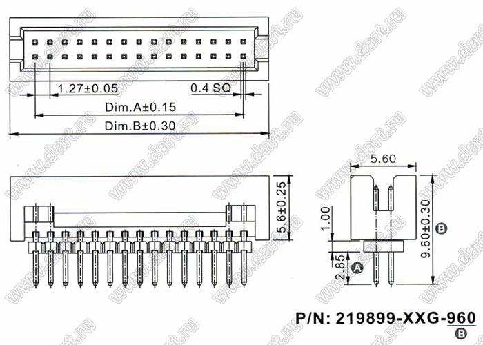 Каталог > Электронные компоненты, радиодетали > Разъёмы (соединители, переходники) > Разъемы IDC для плоского кабеля (шлейфа) > 1,27 x 1,27 > 219899-xxG-960 серия