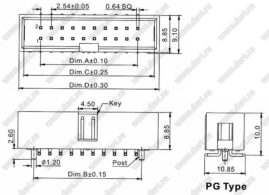 Каталог > Электронные компоненты, радиодетали > Разъёмы (соединители, переходники) > Разъемы IDC для плоского кабеля (шлейфа) > 2,54 x 2,54 > 2316SM-XXG-PG серия