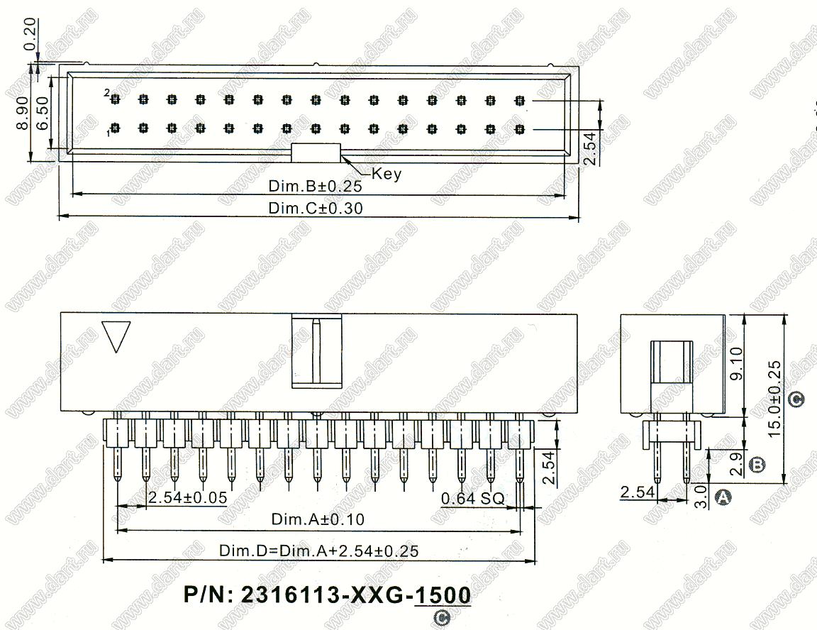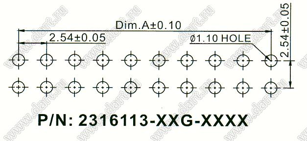 Каталог > Электронные компоненты, радиодетали > Разъёмы (соединители, переходники) > Разъемы IDC для плоского кабеля (шлейфа) > 2,54 x 2,54 > 2316113-XXG-1500 (BHE-XX) серия