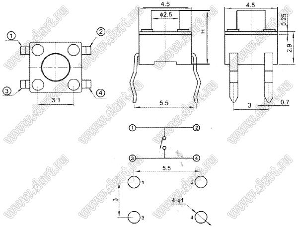 1) Серия TVCP02 2) Высота, мм 038=3,8 мм 043=4,3 мм 048=4,8 мм 050=5,0мм 060=6,0мм 070=7,0мм 080=8,0мм 090=9,0мм 3) Усилие нажатия, г B=180 C=250 4) Упаковка B=в пакете