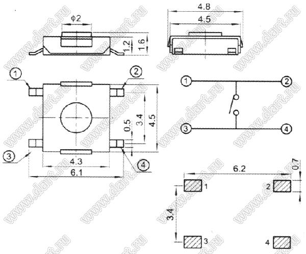 Тактовые переключатели (кнопки) для поверхностного (SMD) монтажа