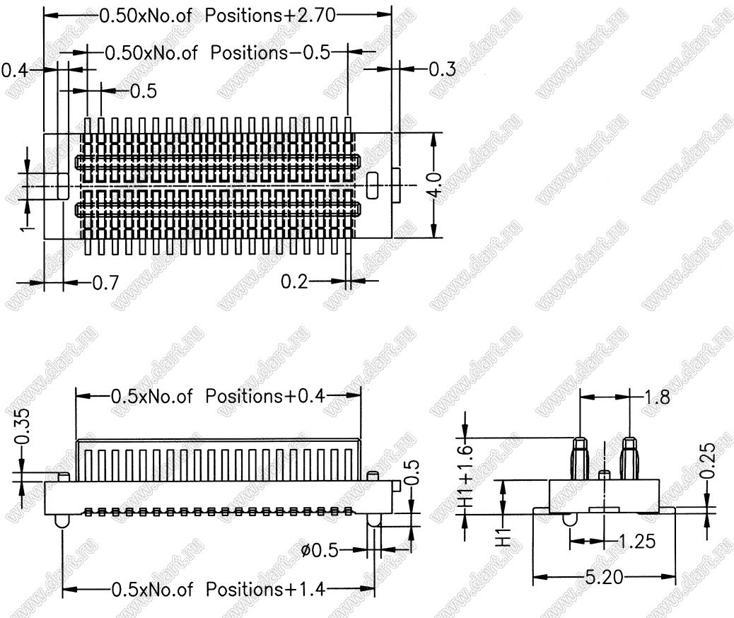 4) Высота изолятора: H1 (розетка): = 080: 0,9мм 013: 1,3мм H2 (вилка): = 022: 2,2мм