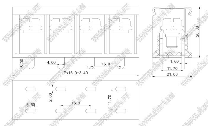 Каталог > Электронные компоненты, радиодетали > Клеммники (колодки клеммные) > Клеммники барьерные > Барьерные клеммники (шаг 16,0 мм) > KF88L-16.0 серия
