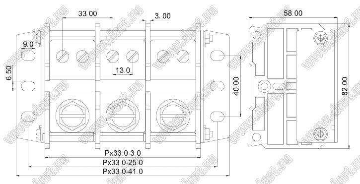 Каталог > Электронные компоненты, радиодетали > Клеммники (колодки клеммные) > Клеммники барьерные > Барьерные клеммники (шаг 45,0 мм) > TD200-31-45.0 серия