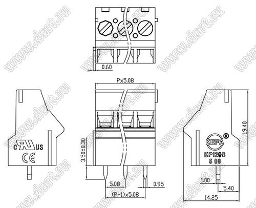 Клеммники винтовые KF129S-5.08 серии, однорядные, прямые, шаг 5,08 мм