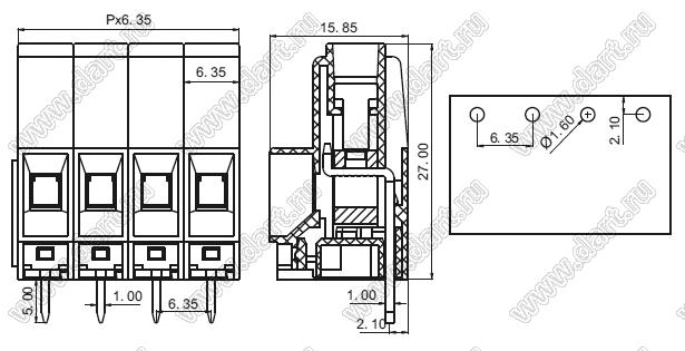 Клеммники винтовые KF133B-6.35 серии, однорядные, прямые, шаг 6,35 мм