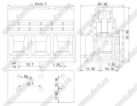 Клеммники винтовые KFA-1270-12.7 серии, однорядные, прямые, шаг 12,7 мм