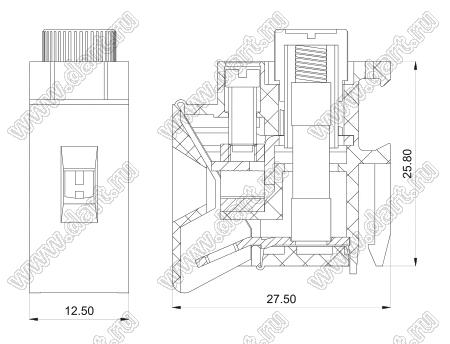 Шаг выводов шаг: 12,5 мм Количество контактов N: 1 -конт. Макс. допустимый ток I max: 10/10 А Макс. рабочее напряжение U: 300/250 В Температура рабочая Tраб.: -40...+105 °C Напряжение пробоя (диэлектрическая стойкость) U ≥: AC3000V/1Min В Сортамент провода A.W.G.: 20-10 Сечение провода s: 4,0 кв.мм Материал винтов: M3.5, сталь никелировнная Материал зажимной части: латунь, никелировнная Материал корпуса: PA66,UL94V-0 Усилие затяжки макс.: 0.8Nm(7.0Lb.in) нм Длина зачистки L: 10-12 мм |