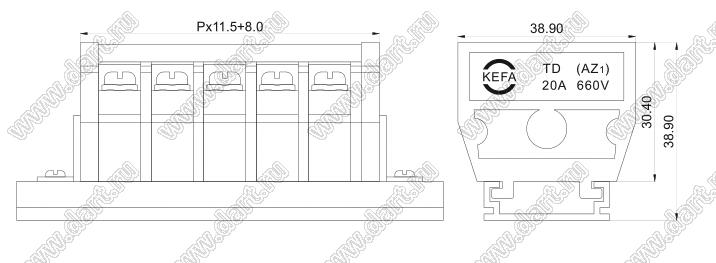 Шаг выводов шаг: 11,5 мм Количество контактов N: 1...xx -конт. Макс. допустимый ток I max: 30/32 А Макс. рабочее напряжение U: 600/750 В Температура рабочая Tраб.: -40…+105C °C Напряжение пробоя (диэлектрическая стойкость) U ≥: 2000 В Сортамент провода A.W.G.: 22-12AWG Сечение провода s: 4 кв.мм Материал винтов: M4, сталь никелировнная Покрытие контактов: латунь, никелировнная Материал корпуса: PA66,UL94V-0 Усилие затяжки макс.: 10 кг/см нм |