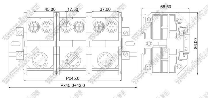 Каталог > Электронные компоненты, радиодетали > Клеммники (колодки клеммные) > Клеммники на DIN рейку > Клеммники на DIN рейку (шаг 45,0 мм) > TD300-21-DG-45.0 серия