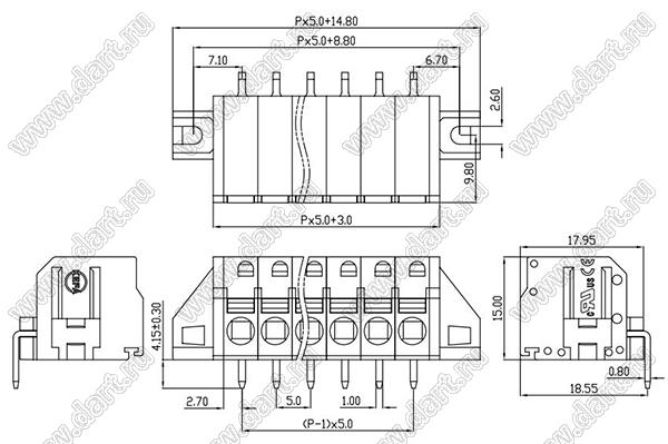 Клеммники нажимные, угловые, с монтажными ушами, шаг 5,0 мм