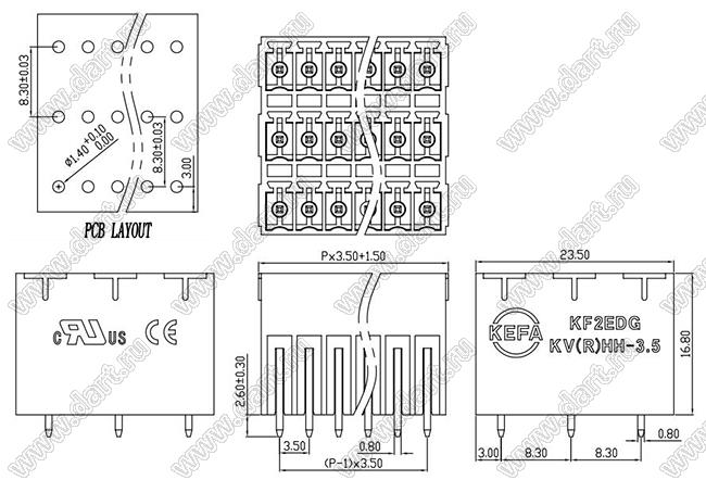 Каталог > Электронные компоненты, радиодетали > Клеммники (колодки клеммные) > Клеммники разъемные > Разъемные клеммники шаг 3,5 мм > KF2EDGKVHH-3.5 серия