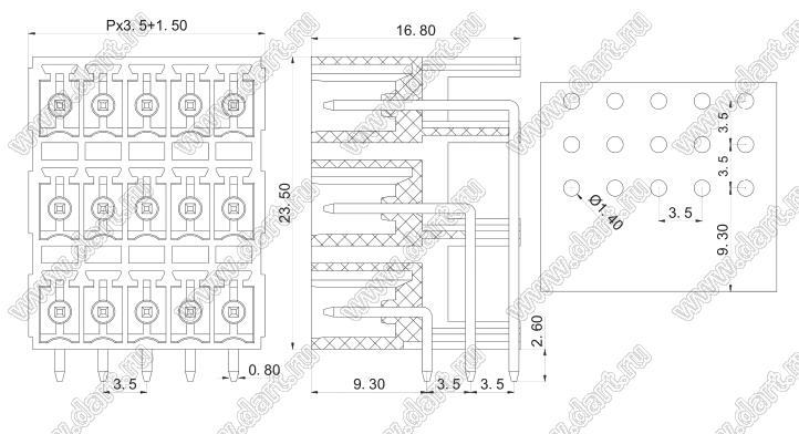 вилки угловые трехрядные на плату, шаг 3,5 мм