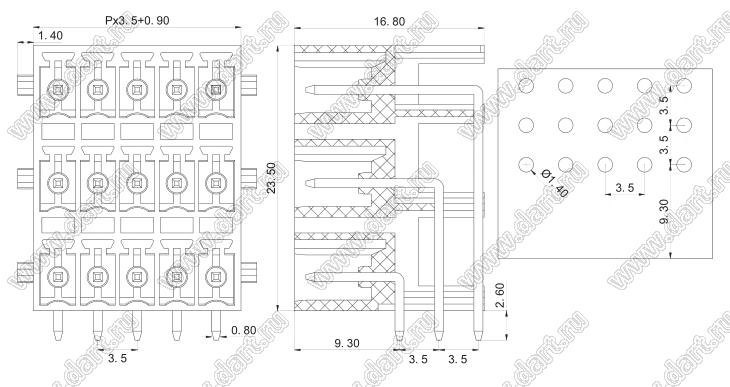 вилки угловые трехрядные на плату с защелками, шаг 3,5 мм