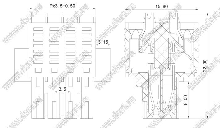 вилки на провод двухрядные, под пружинные зажимы, с монтажными ушами, шаг 3,5 мм