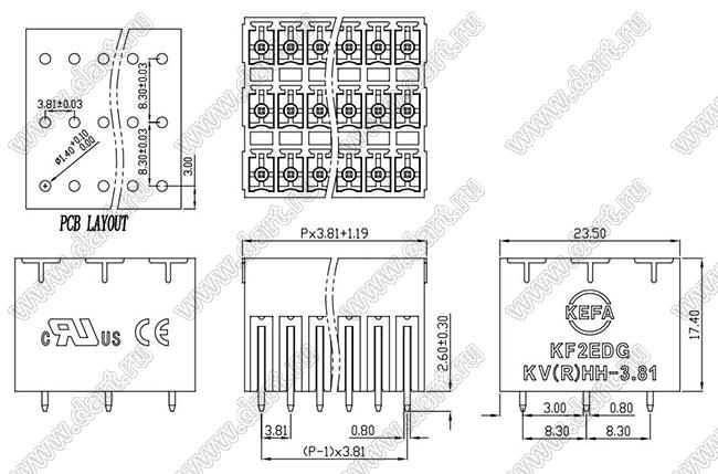 Каталог > Электронные компоненты, радиодетали > Клеммники (колодки клеммные) > Клеммники разъемные > Разъемные клеммники шаг 3,81 мм > KF2EDGKVHH-3.81 серия
